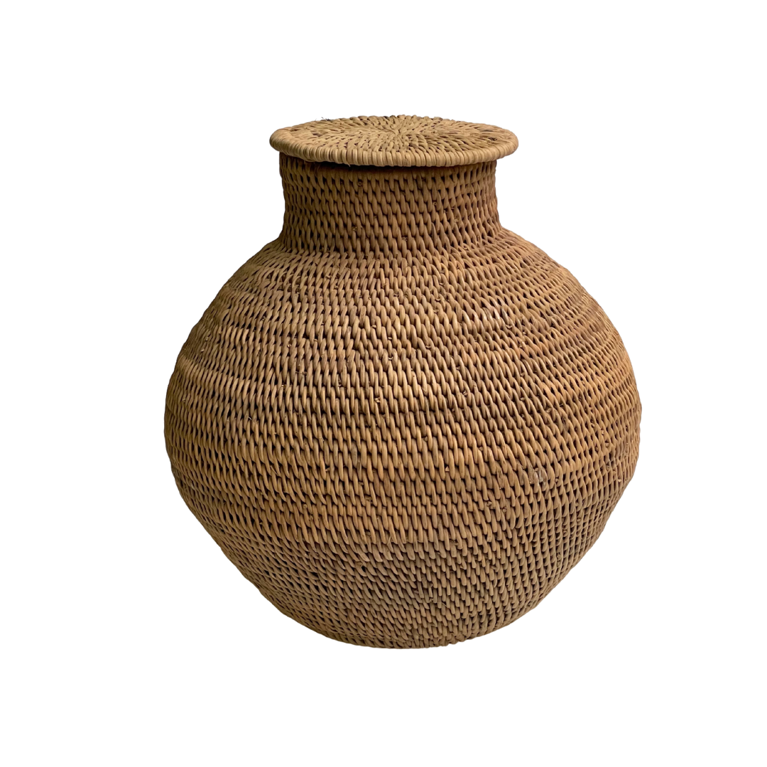 The Buhera Pot Basket Natural #27 is an authentic example of traditional Zimbabwean craftsmanship. Handwoven by Buhera women using centuries-old techniques, each basket reflects deep cultural heritage and skill.