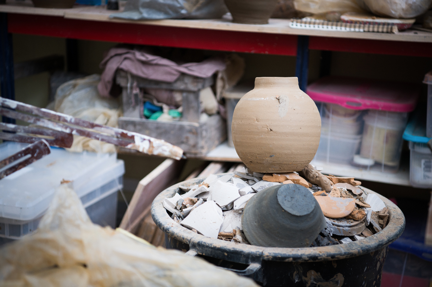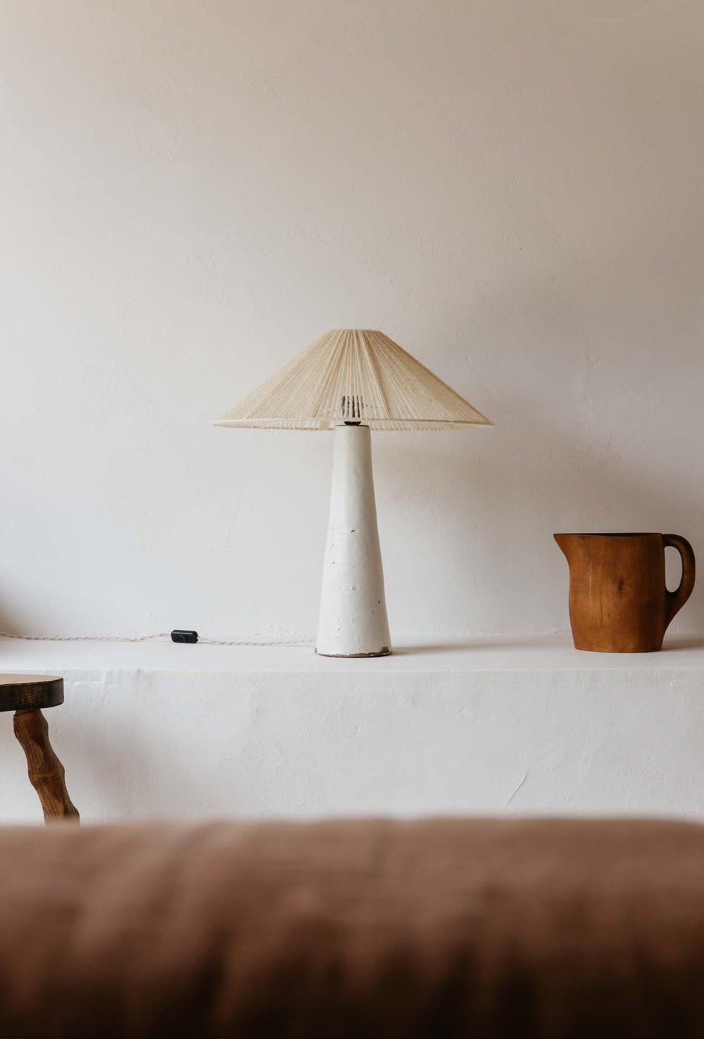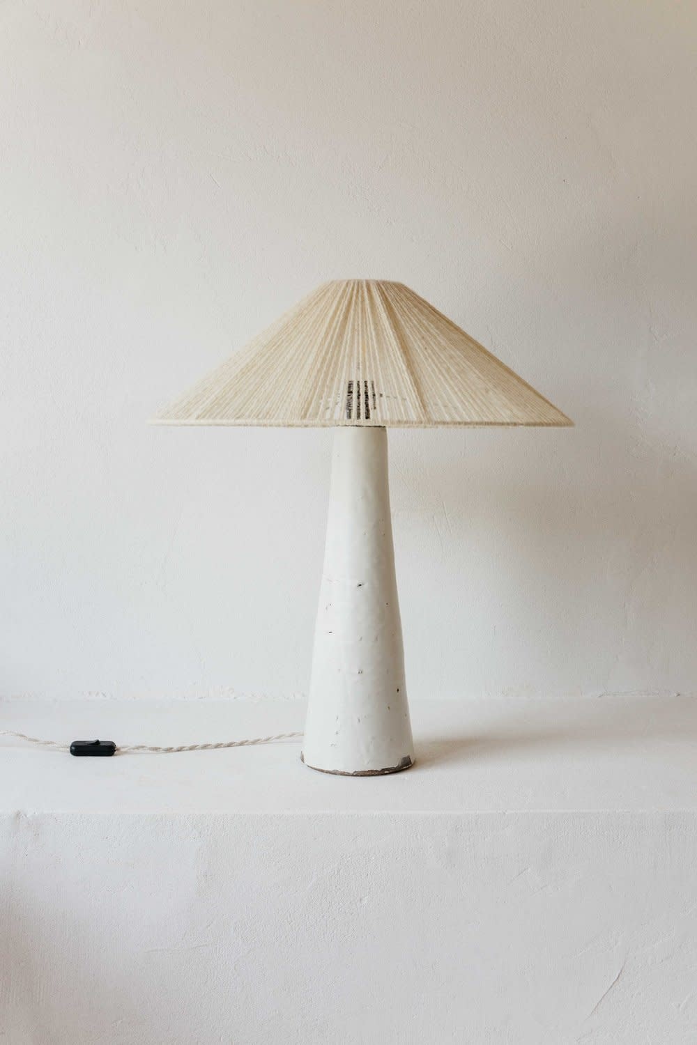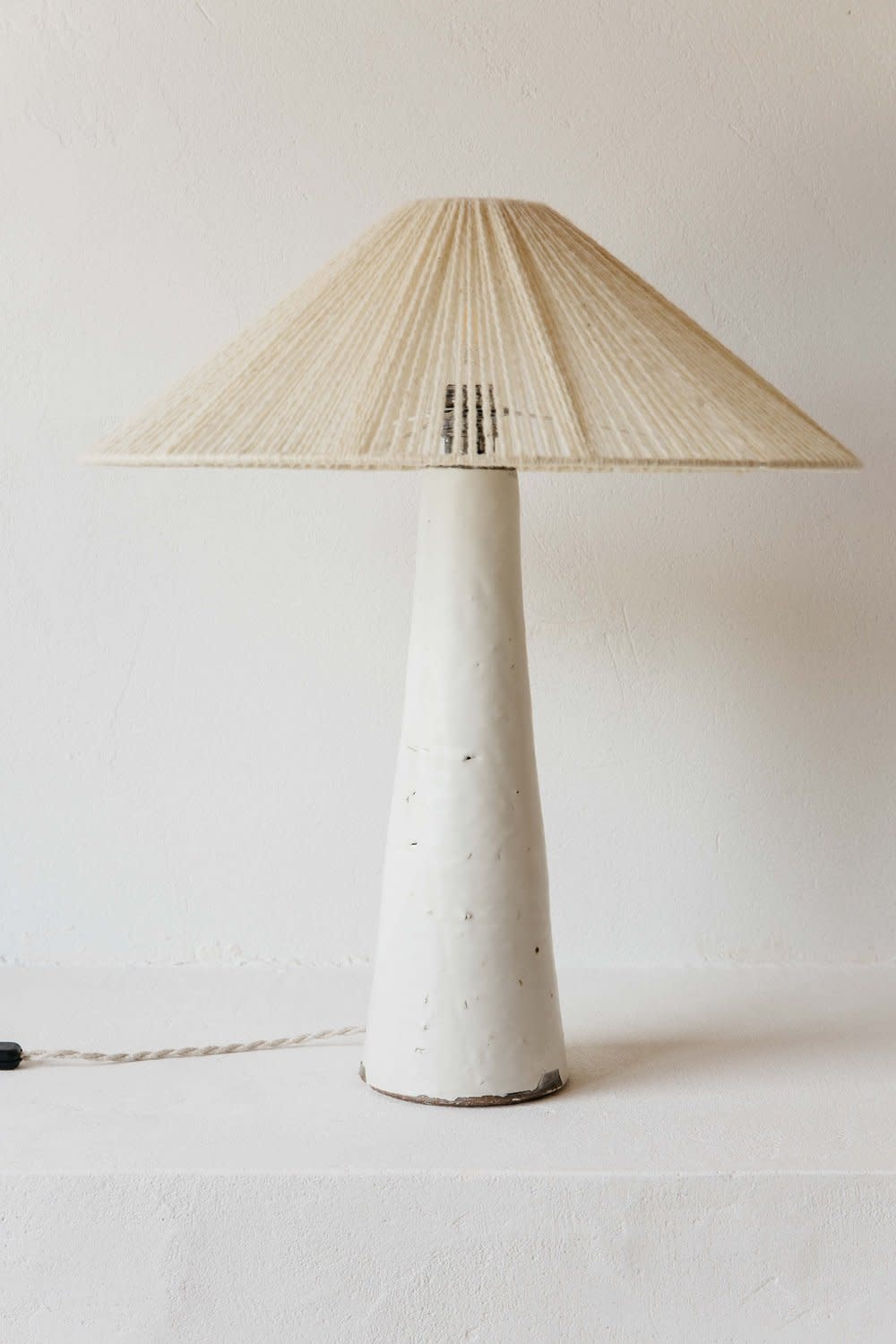 The feet of the lamps are made by Benoit Audureau in his workshop. He likes to prepare the clay, raw clay that is not denatured. His clay comes from brickworks or small local potteries. The clay is crushed so that whatever is in the clay stays in the clay. It is fired in an electric kiln at 1270gr or in a wood-fired Phoenix kiln at 1320gr