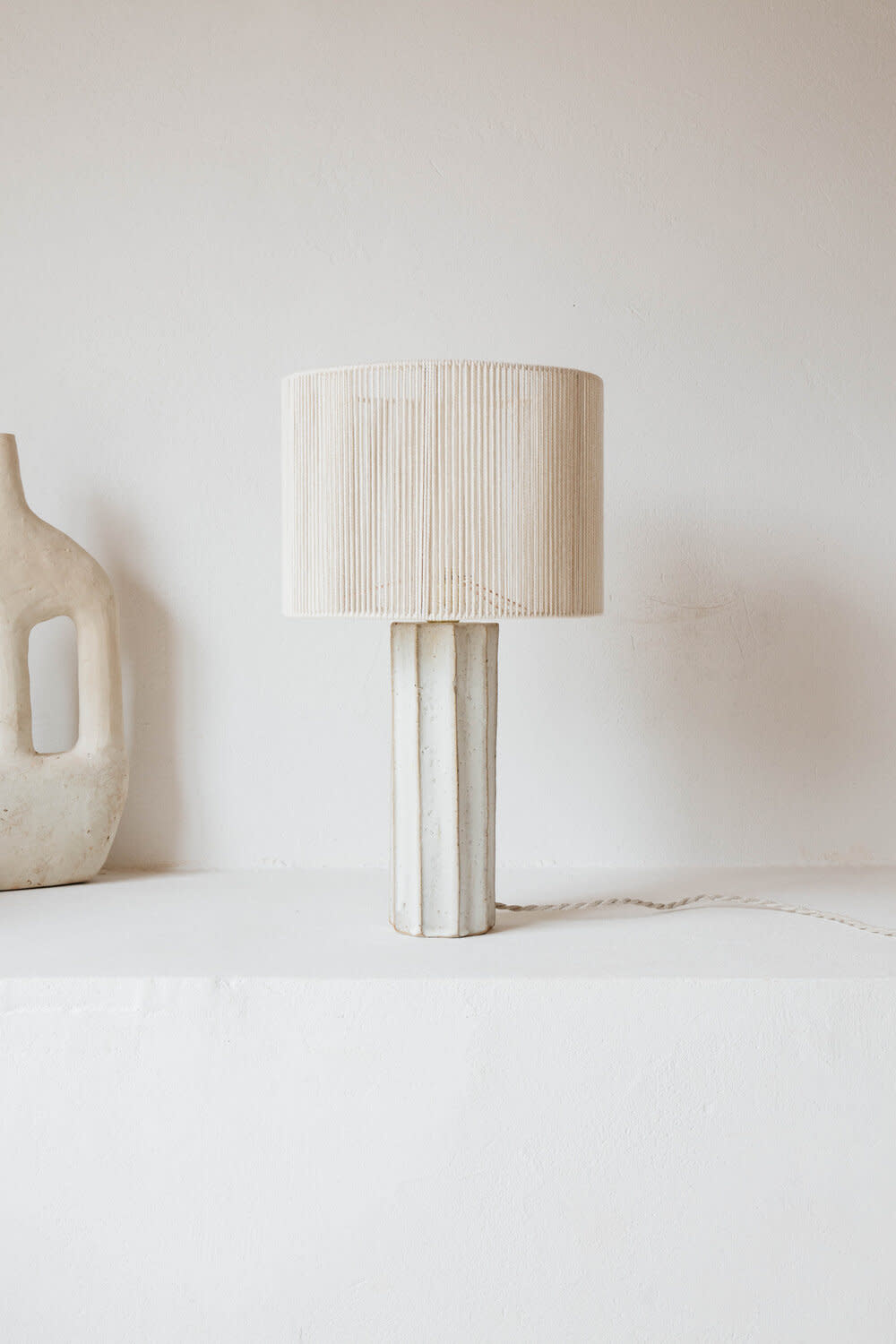 The feet of the lamps are made by Benoit Audureau in his workshop. He likes to prepare the clay, raw clay that is not denatured. His clay comes from brickworks or small local potteries. The clay is crushed so that whatever is in the clay stays in the clay. It is fired in an electric kiln at 1270° or in a wood-fired Phoenix kiln at 1320°.