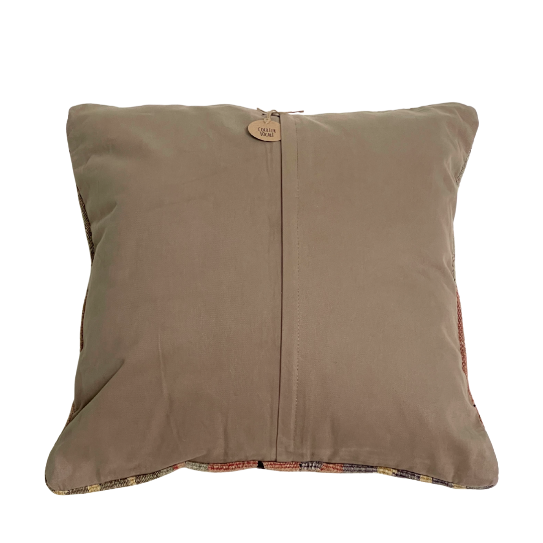 • This Kilim cushion is handwoven in Turkey from authentic vintage rugs. Each piece carries its own story through its colors, patterns, and texture — a unique touch of craftsmanship and cultural heritage for your home.