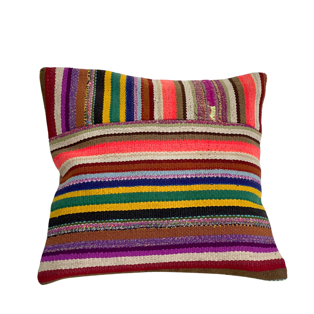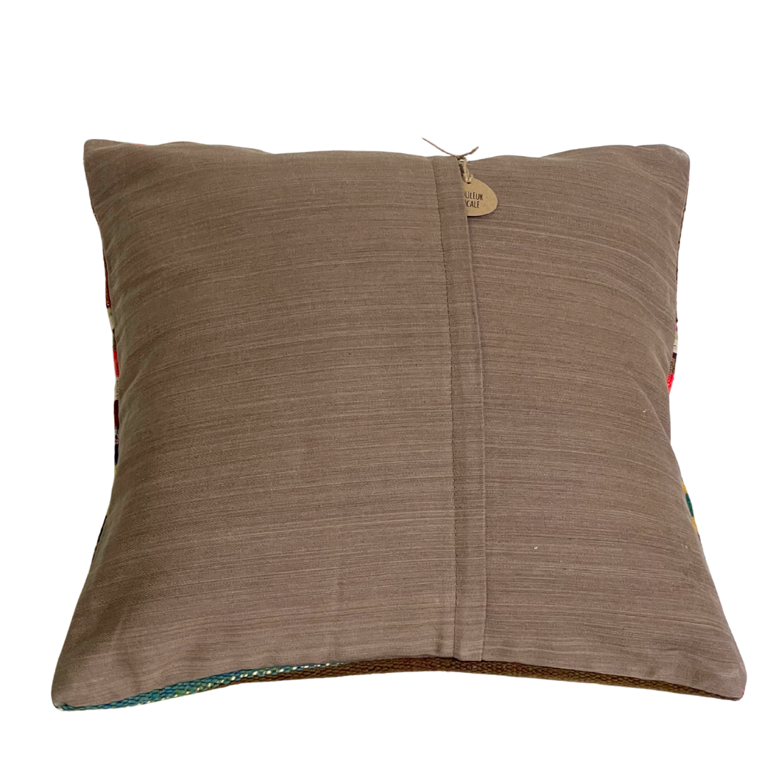 • This Kilim cushion is handwoven in Turkey from authentic vintage rugs. Each piece carries its own story through its colors, patterns, and texture — a unique touch of craftsmanship and cultural heritage for your home.