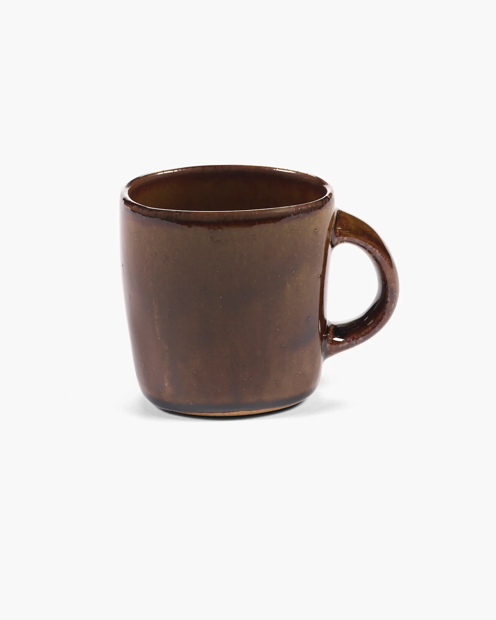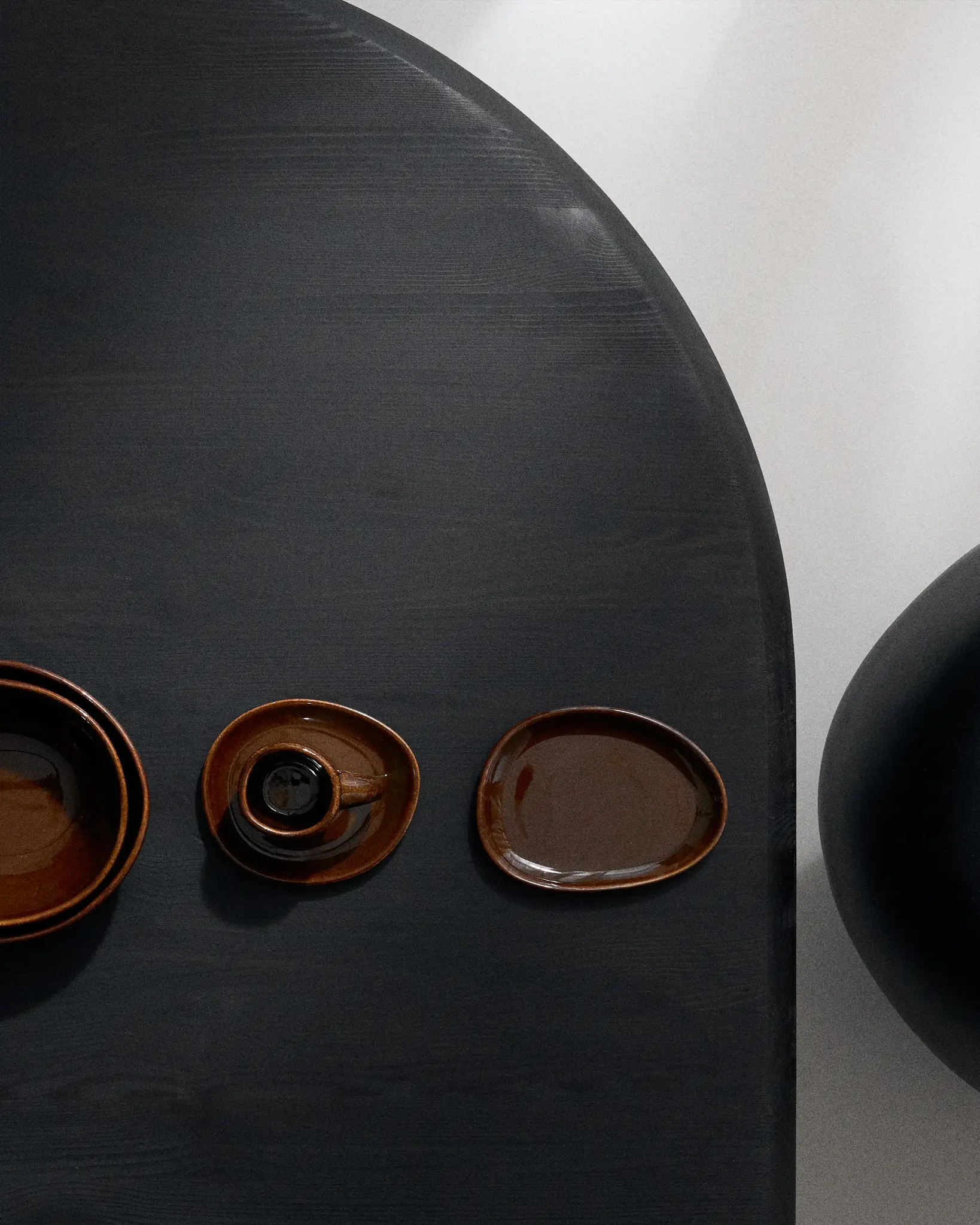 • The mugs from the Out of Lines collection by Uncharted combine organic shapes with earthy hues such as off-white, deep black, and vibrant ochre. Each piece is inspired by the natural ovals found in olives, lemons, and plums,