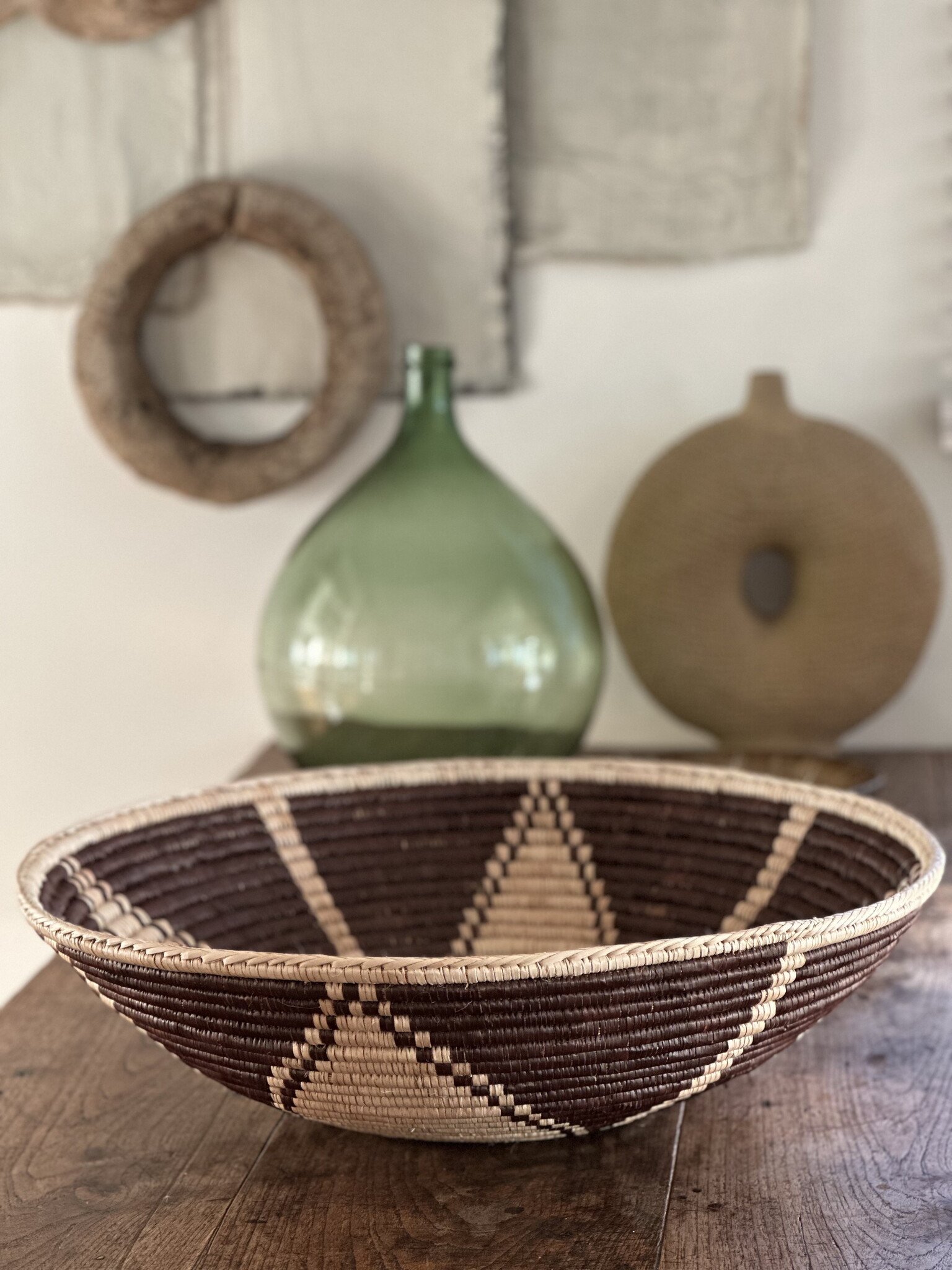 • Handwoven by women from the Ndebele community in Zimbabwe, each basket carries generations of artistry and meaning. Every pattern tells a story — of identity, heritage, and connection. A truly unique piece of African design and culture for your home.