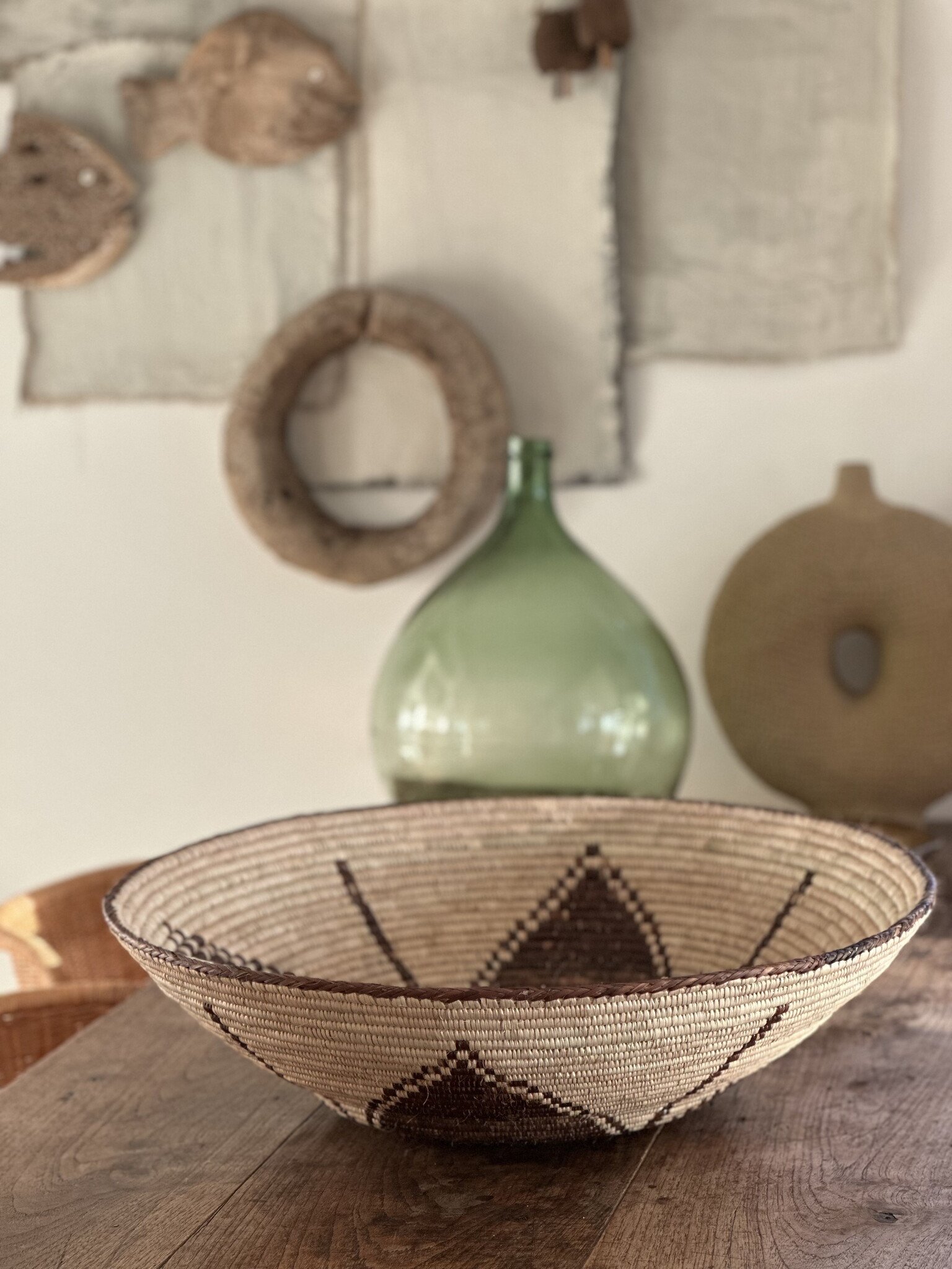• Handwoven by women from the Ndebele community in Zimbabwe, each basket carries generations of artistry and meaning. Every pattern tells a story — of identity, heritage, and connection. A truly unique piece of African design and culture for your home.