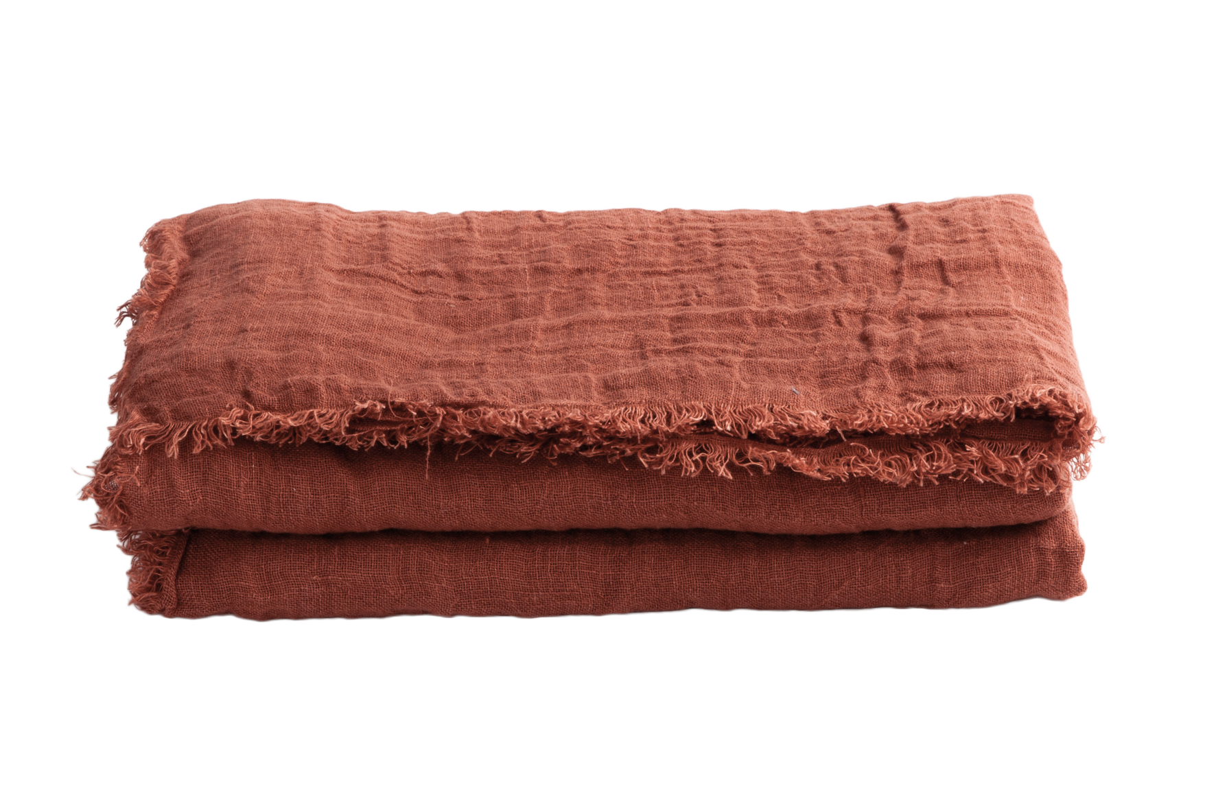Throw vice versa fringed, washed linen gauze - argile