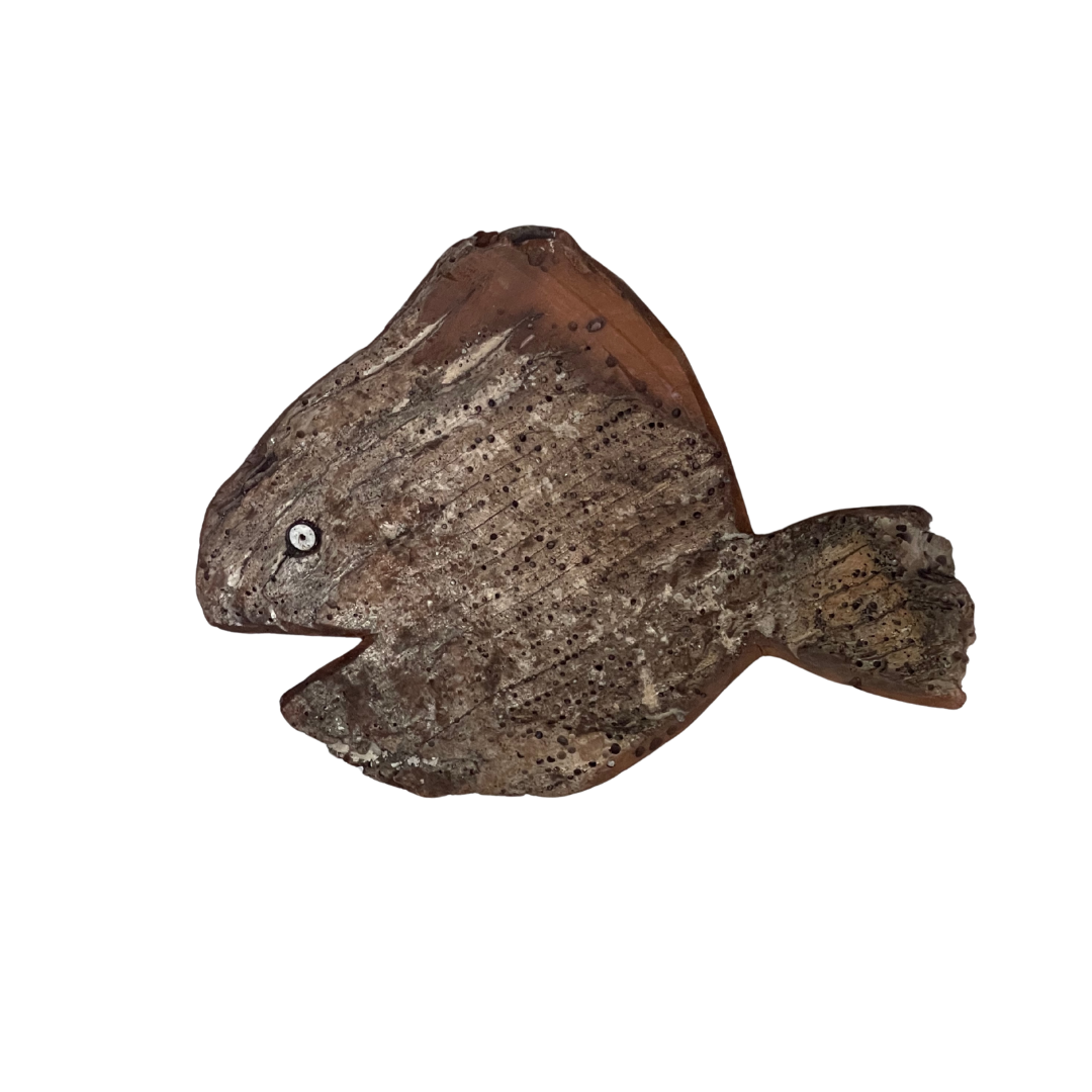 • This fish is made from driftwood and wood from old canoes. It was made with love by Isaiah, an artist living on Lamu, a beautiful island off the Kenyan coast. A unique decorative piece with its own story.