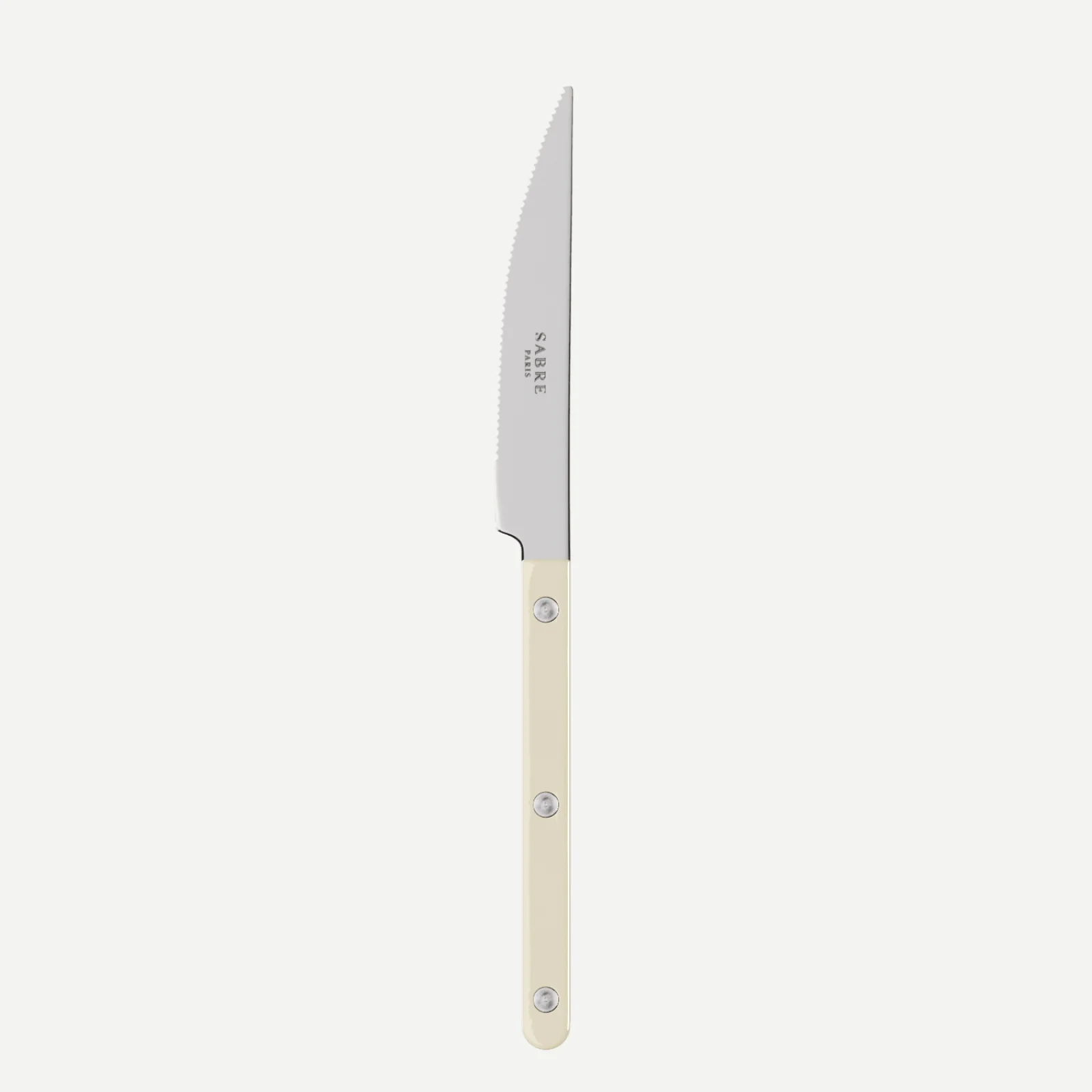Het Diner Mes Bistrot Solid in Ivoor van Sabre Paris combineert vakmanschap, balans en Franse elegantie. Het mes ligt prettig in de hand en snijdt soepel door dankzij het hoogwaardige roestvrij staal dat Sabre al jaren typeert.