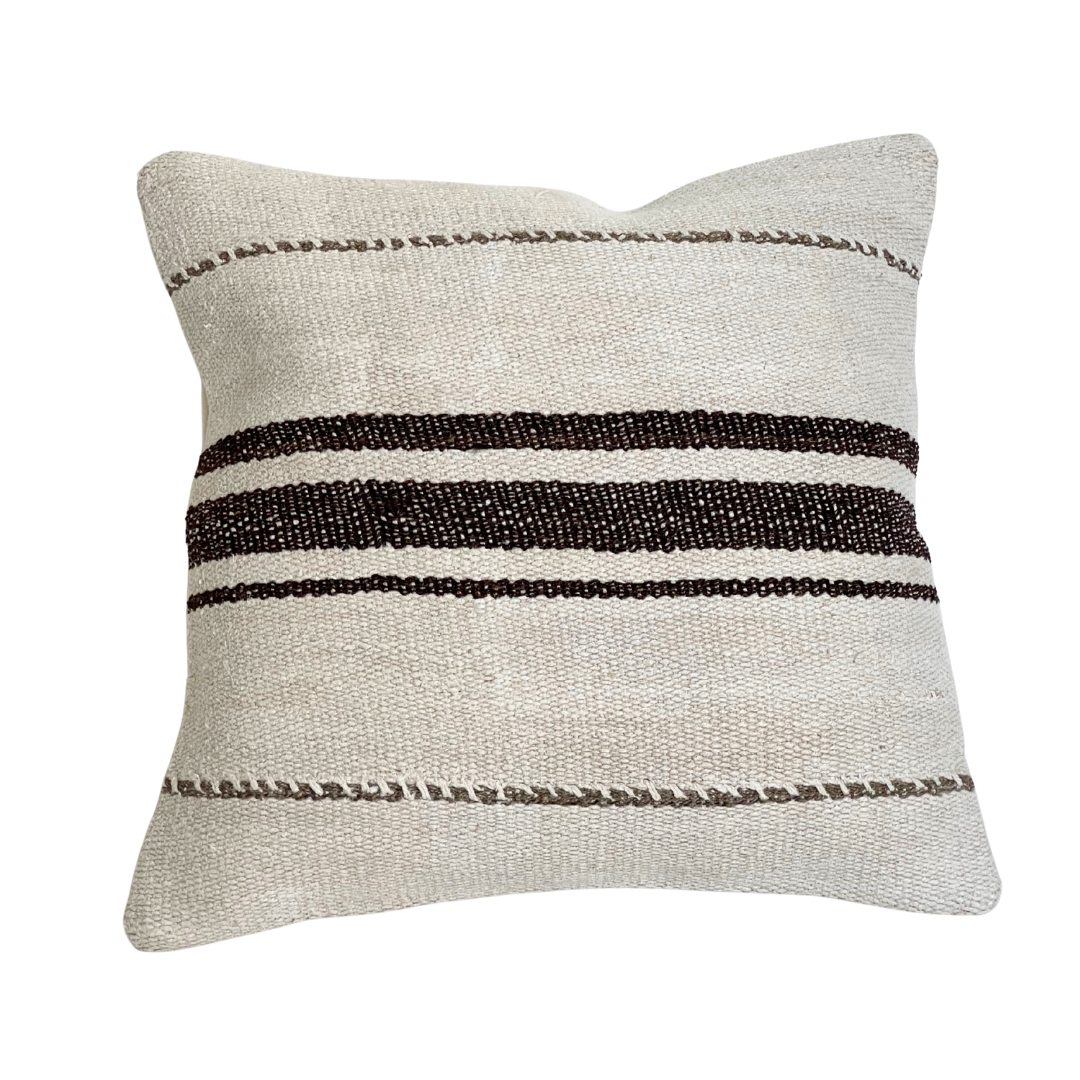 • Dit Kelim kussen is met de hand geweven in Turkije en samengesteld uit authentieke vintage tapijten. Elk kussen vertelt zijn eigen verhaal door kleur, patroon en textuur. Een uniek accent vol karakter en vakmanschap voor je interieur.