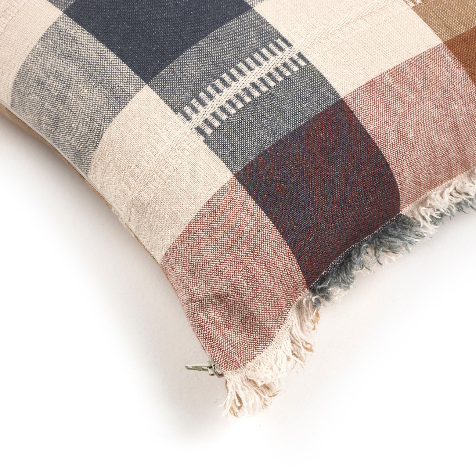 Maar het mooie aan ruitjes is dat door de kruising van kleuren er zoveel extra kleurnuances ontstaan. Het kussen is afgewerkt met franjes aan twee zijden en heeft een ritssluit