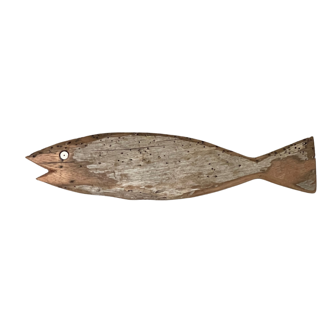 • Deze vis is gemaakt van drijfhout en hout van oude kano's. Hij is met liefde gemaakt door Isaiah, een kunstenaar die leeft op Lamu, een prachtig eiland voor de Keniaanse kust. Een uniek decoratief stuk met een eigen verhaal.
